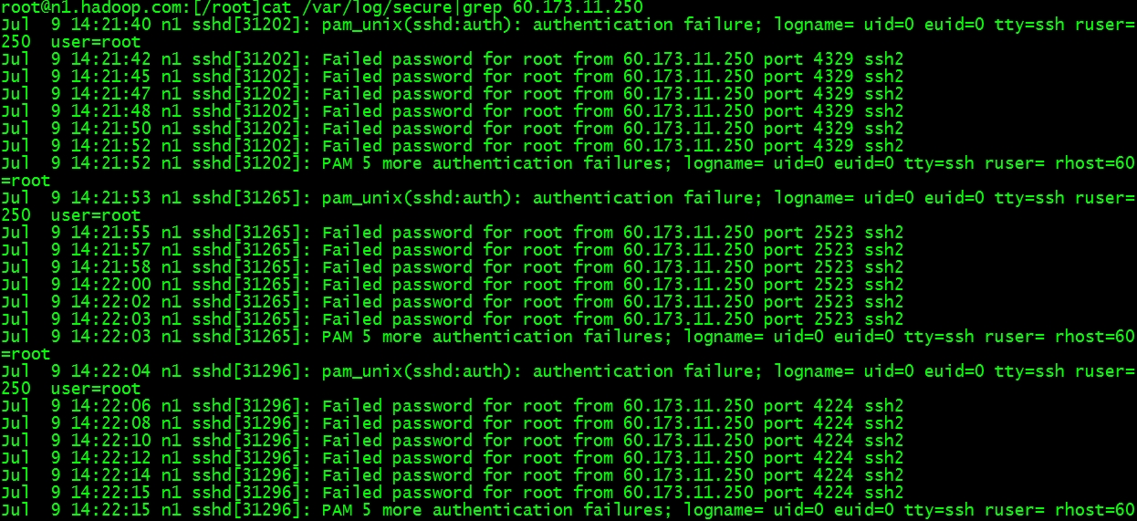 查看/var/log/secure文件寻找可疑IP登陆次数
