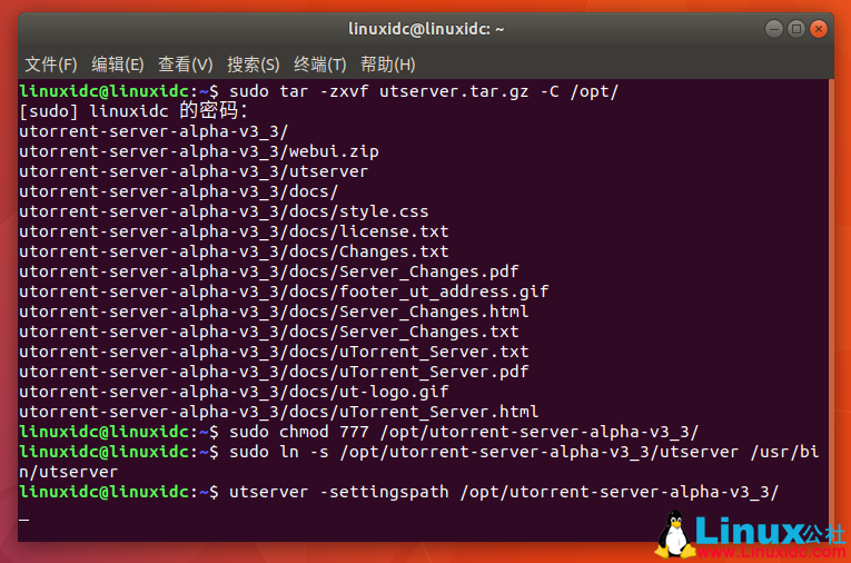 $ sudo ln -s /opt/utorrent-server-alpha-v3_3/utserver /usr/bin/utserver