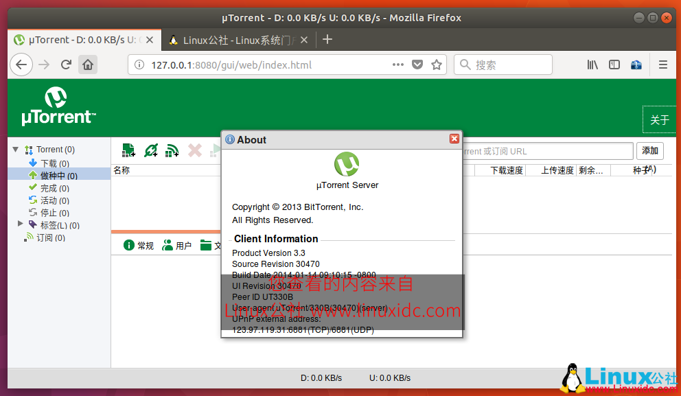 它适用于Microsoft Windows和Mac OS X作为客户端软件。在Linux中,uTorrent是作为服务器软件安装的,它为管理下载提供了一个基于Web的界面。以下是在Ubuntu 17.10 安装 uTorrent的步骤。如果您正在寻找最好的开源替代品uTorrent,那就去使用qBittorrent。
