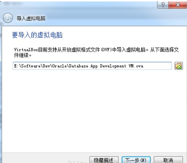 选择下载好的OVA文件(Pre-built Oracle VM VirtualBox appliances)