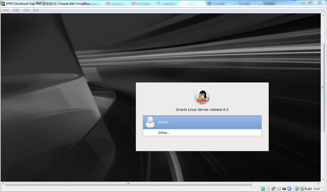 导入完毕后,运行虚拟机。稍等几分钟,就能看到Oracle Linux的登陆界面了。