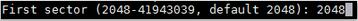 输入第一个扇区的大小。如果是一个新的磁盘,通常选择默认值。如果你是在同一个磁盘上创建第二个分区,我们需要在前一个分区的最后一个扇区的基础上加 1。