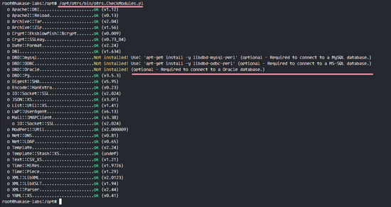 使用下面的 otrs 脚本命令检查 OTRS 安装需要的系统软件包: