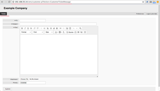 打开你的 web 浏览器并输入你的服务器 IP 地址: http://192.168.33.14/otrs/