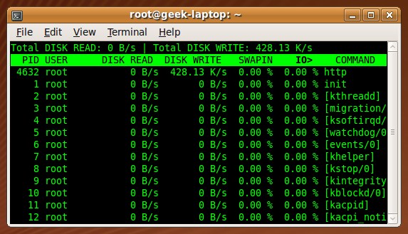 如果你知道有程序在磨你的硬盘,但是你又不能确定是哪一个程序在磨你的硬盘,那么就用 iotop来帮助你吧。