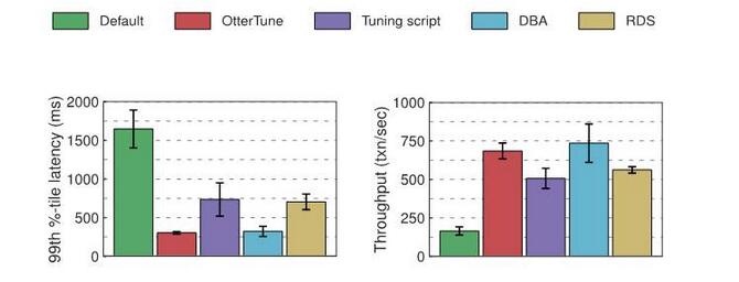我们在本文中探讨了OtterTune的机器学习管道的每个组件,并演示了它们彼此如何联系,从而调优DBMS的配置。之后,我们评估了OtterTune对MySQL和Postgres的调优效果:将其最佳配置的性能与数据库管理员(DBA)及其他自动调优工具选择的配置作了一番比较。