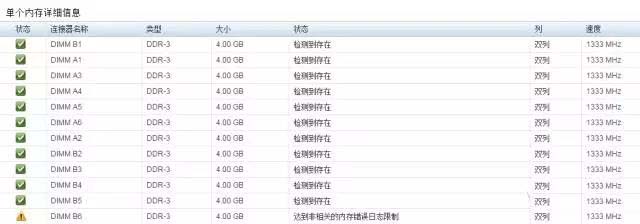 再看看硬件状态,B6内存存在告警