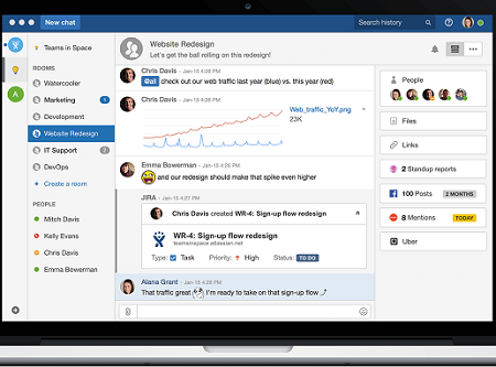 微软Microsoft Teams是企业协作工具市场的新兵,去年底才发布,直到2017年第一季度才正式上市,如果你的团队是Office 365的用户,就可以免费使用Microsoft Teams,对于Office365来说,Teams是一个很好的补充,而且还集成了Skype用于视频和音频通话。与Slack不通,Teams采用线性对话方式,因此每个对话分支都能保持**。