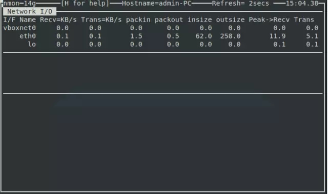 如果想收集 Linux 系统的网络统计数据,按下n键,你将会看到下面输出: