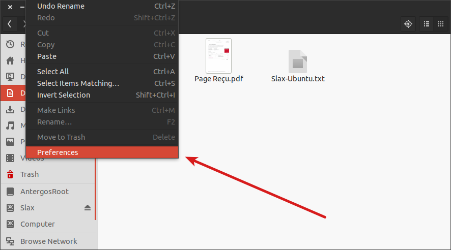 要修复这个,进入文件管理器,并在菜单中点击选项: