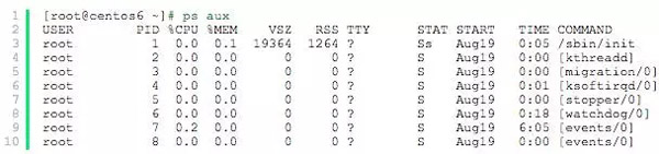 ps -aux 显示所有不与终端和与终端相关的进程完整信息
