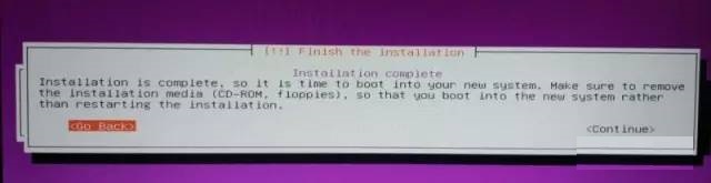 - 在安装GRUB引导后的最终安装环节,不要选继续而是选择退回。