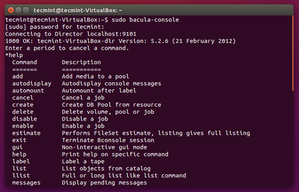 - 2. 控制台(console):让用户可以与上述Bacula导向器进行联系。