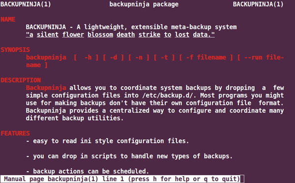 这款功能强大的备份工具让用户可以备份活动配置文件,这些文件可以放入到/etc/backup.d/目录。它有助于通过网络,执行安全的远程备份以及增量备份。