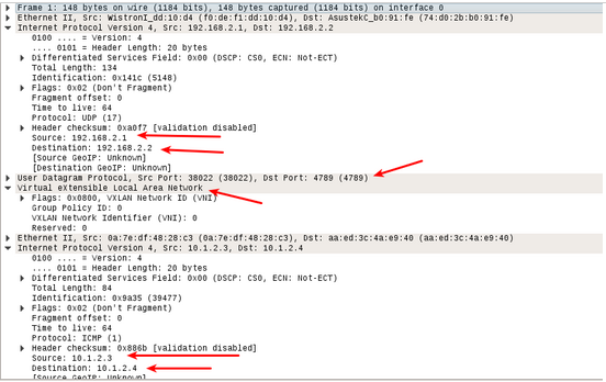 在host1的docker容器机里面ping host2的docker容器机, wireshark抓包 :