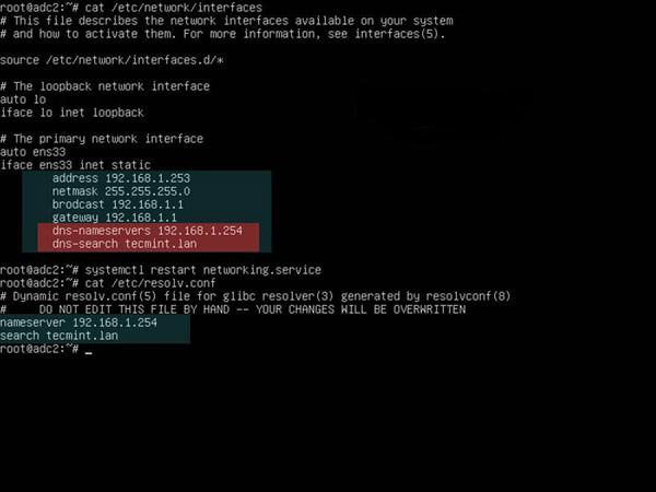 #?systemctl?restart?networking.service #?cat?/etc/resolv.conf