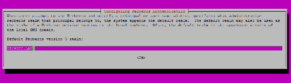 在安装的过程中,你需要提供 Kerberos 域名。输入大写的域名然后按回车键完成安装过程。