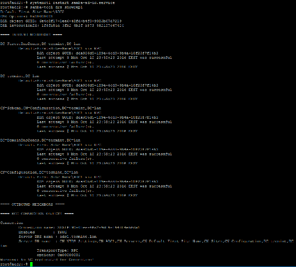 #?systemctl?restart?samba-ad-dc #?samba-tool?drs?showrepl