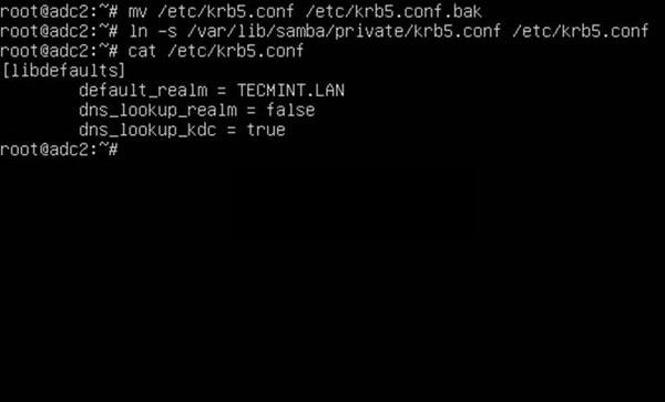 #?mv?/etc/krb6.conf?/etc/krb5.conf.initial #?ln?-s?/var/lib/samba/private/krb5.conf?/etc/ #?cat?/etc/krb5.conf<