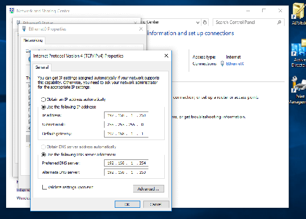 如果你从 Microsoft 客户端远程管理 Samba4 域控制器,或者有其它 Linux 或 Windows 客户机集成到当前域中,请确保在它们的网卡 DNS 服务器地址设置中提及 adc2 服务器的 IP 地址,以实现某种程序上的冗余。