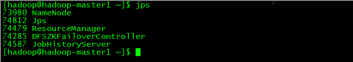 hadoop-master1开启了NameNode、ResourceManager、HistoryServer和ZKFC,如下图所示: