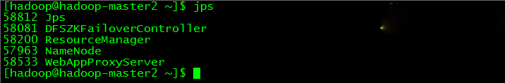 hadoop-master2开启了NameNode、ResourceManager、ProxyServer和ZKFC,如下图所示:
