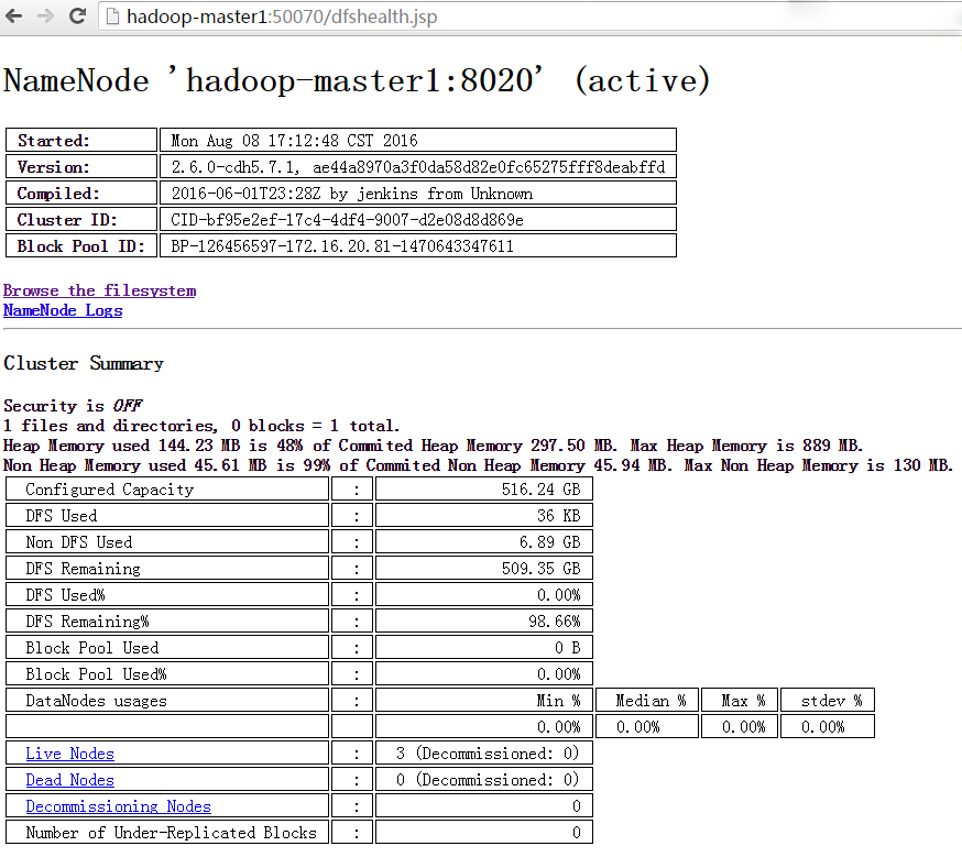 HDFS还有一个隐藏的UI页面http://hadoop-master1:50070/dfshealth.jsp比较好用: