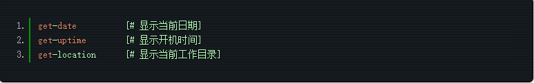 get-date [# 显示当前日期] get-uptime [# 显示开机时间] get-location [# 显示当前工作目录]
