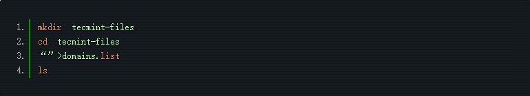 mkdir tecmint-files cd tecmint-files “”>domains.list ls
