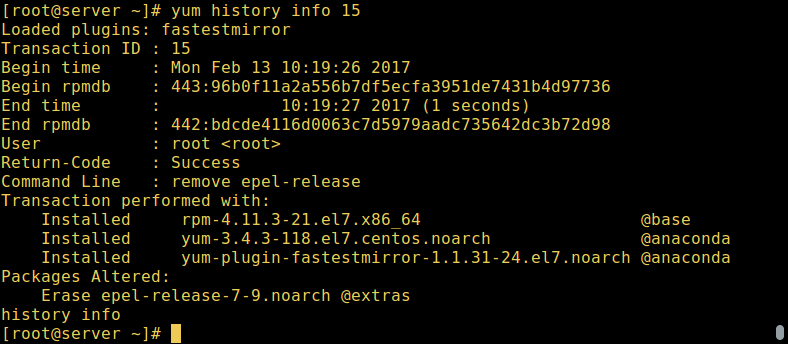 via: http://www.tecmint.com/view-yum-history-to-find-packages-info/