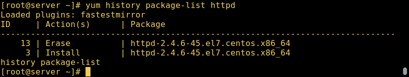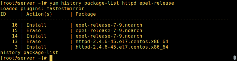 # yum history package-list httpd epel-release 或 # yum history packages-list httpd epel-release