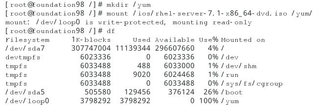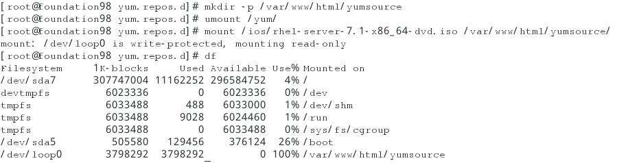 在这个“根”目录建立一个目录,并将刚才的/yum/卸载,然后把镜像挂载到这个建立的目录里。