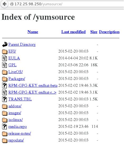 打开浏览器,输入172.25.98.250/yumsource,就可以看到我们配置的网络yum源。