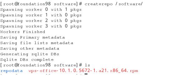 createrepo /software ##在建立的仓库目录中执行,就会生成repodate目录