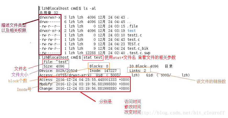 在Linux下,我们可以用stat+文件名查看文件的相关参数,具体参数解释如下图: