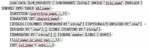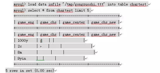 mysql>load data infile '/tmp/gongzuoshi.ttt' into chartest ; CHARACTER SET gbk