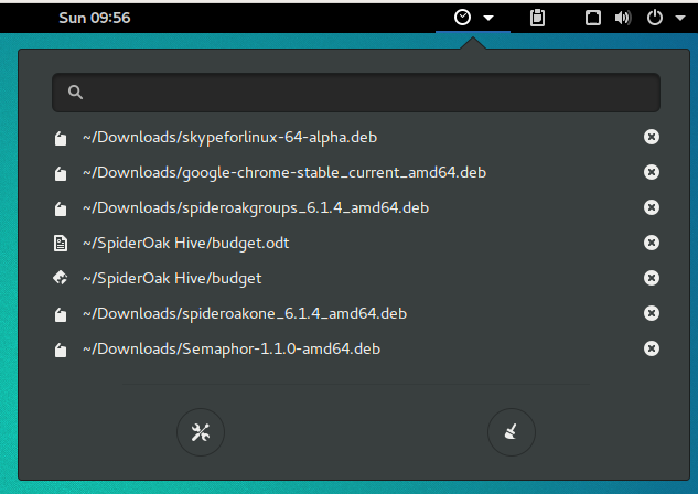 如果大家需要经常访问最近打开过的文件,则 Recent Items 正是各位乐见的扩展。此项扩展会在 GNOME 面板中添加一个快捷按钮,大家可以点击以查看最近使用过的文件(见图五)。直接点击对应条目即可将其重新打开。