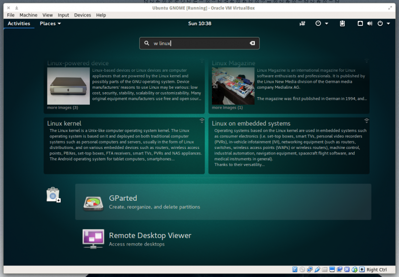 如果大家像我一样经常查询维基百科,那么请尝试这项扩展。安装之后,点击 Activities 按钮而后输入大家需要查询的条目名称即可。举例来说,要查询 Linux 的相关内容,点击该按钮而后输入