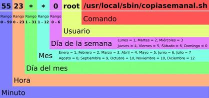 SHELL=/bin/bash PATH=/sbin:/bin:/usr/sbin:/usr/bin MAILTO=root HOME=/ # .—————- minute (0 – 59) # | .————- hour (0 – 23) # | | .———- day of month (1 – 31) # | | | .——- month (1 – 12) OR jan,feb,mar,apr … # | | | | .—- day of week (0 – 6) (Sunday=0 or 7) OR #sun,mon,tue,wed,thu,fri,sat # | | | | | # m h dom mon dow command # * * * * * command will be executed