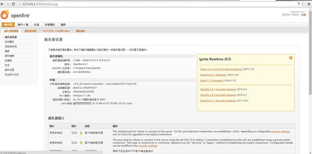 我们可以在管理平台上看到我们openfire的配置信息了,如图