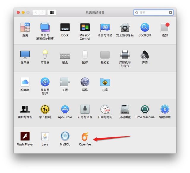 对于mac版本的安装,下载后点击安装,安装完成后,可能会不知道安装在哪里,我们可以打开偏好设置,要重新打开才有效的,然后打开openfire的按钮,如下图,