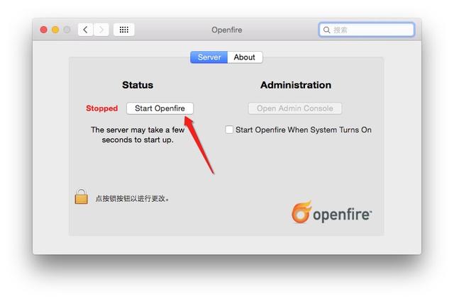 这个时候,我们直接点击start openfire就可以打开我们mac版本的服务器,此外再次提示一下的就是,如果打不开openfire要检查里面的端口有没有被占用了。