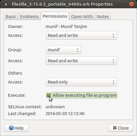 - 像前面一样给它添加运行权限(属性 > 权限)。