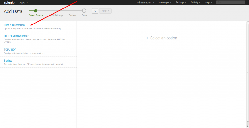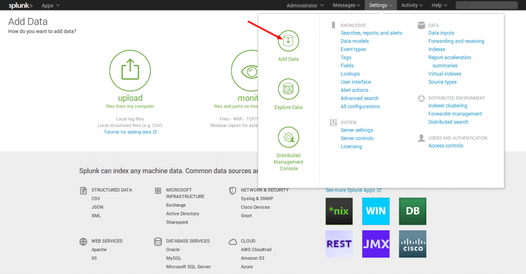在主页上列出了不同的类别,您可以选择所需的一个开始splunking。