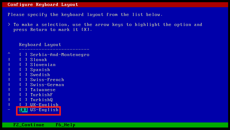使用箭头键从多个可用选项中选择您的键盘布局,如图片所示。