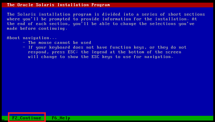 在本节中,您将通过Solaris安装程序安装,并了解是如何工作的。阅读后按F2键继续。