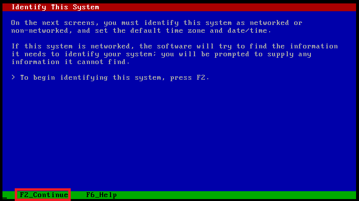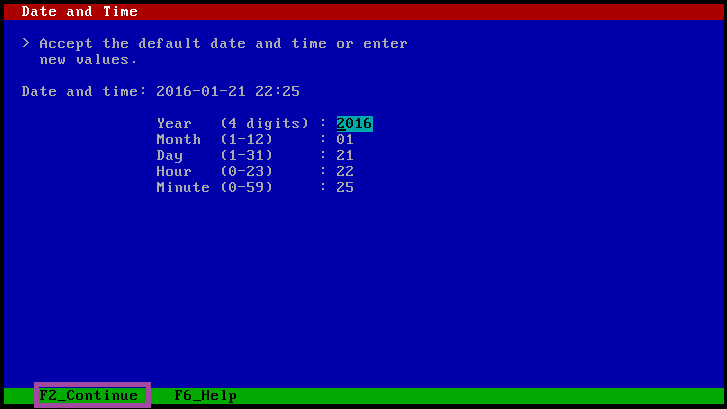 按F2键来确定您的系统和网络,设置默认时区和时间/日期。