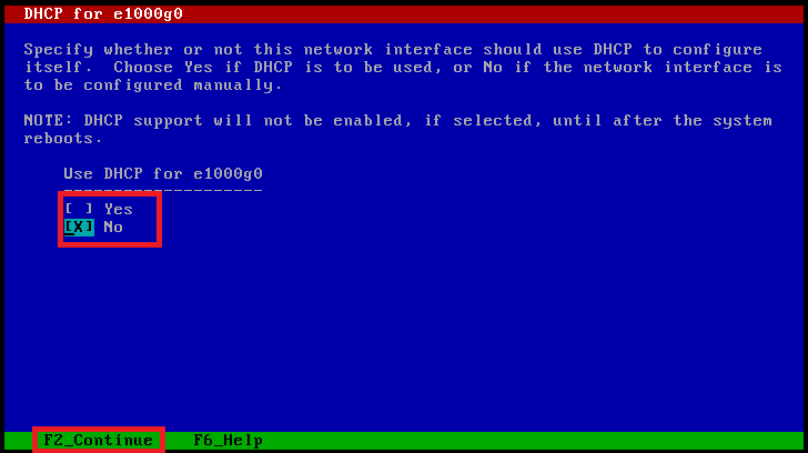 DHCP网络:然后选择“No”的选项用于指定您为您的网络不使用DHCP。