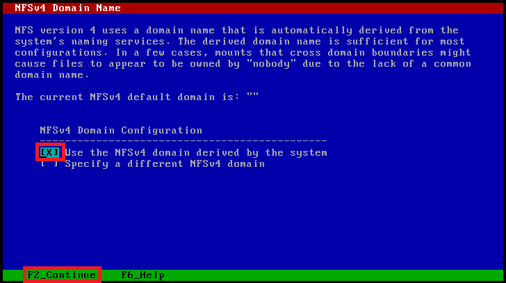 接下来您将被要求配置NFSv4域,所以选择第一个选项使用NFSv4域系统。
