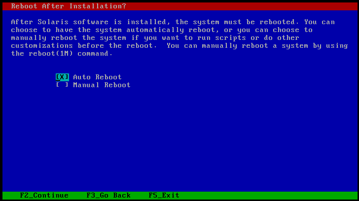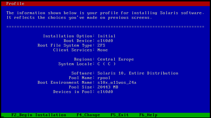 让我们回顾每一个选项,你选择为Solaris的安装配置环境,如果一切正常,那么按F2键开始安装。